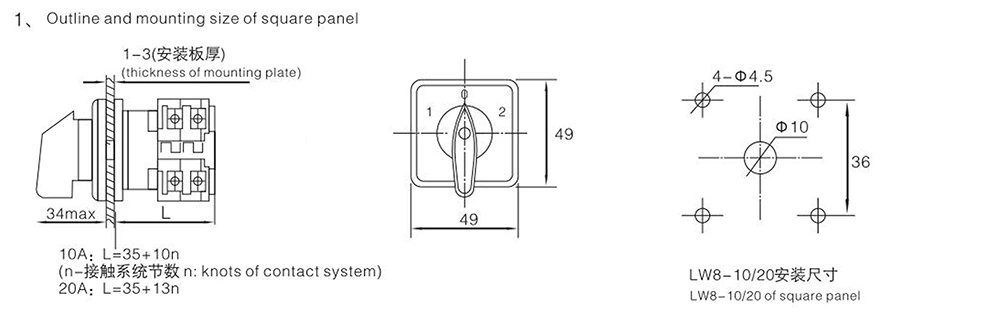 - Отличные показатели безопасности: трехпозиционный поворотный кулачковый переключатель на 10 А, в котором использованы тщательно отобранные высококачественные материалы и общая компактная конструкция, он имеет отличные изоляционные характеристики, обеспечивая электрическую безопасность от источника; Операция переключения плавная и гибкая, с высокой безопасностью и надежностью.