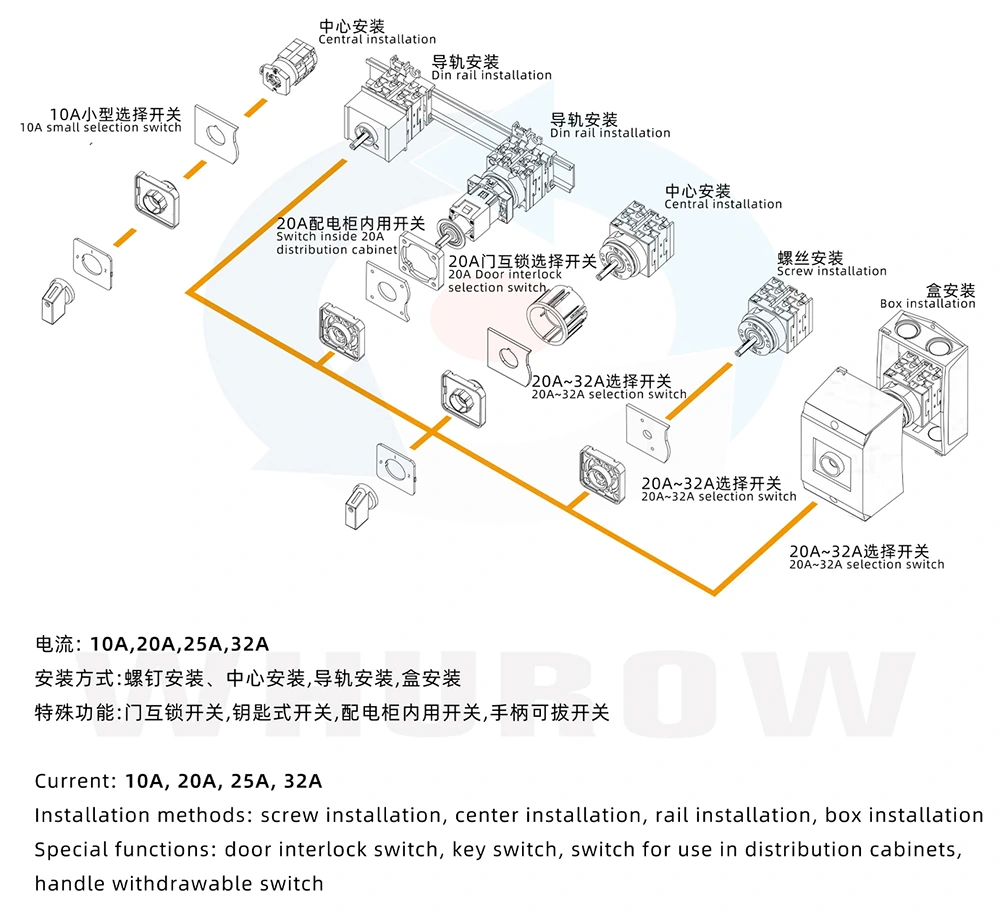 Являясь профессиональным производителем и поставщиком в Китае, компания YAMING стремится предоставлять высококачественную продукцию для электрических переключателей. Трехпозиционный кулачковый переключатель 32А для монтажа на DIN-рейку — это классический продукт, сочетающий в себе технологии, качество и практичность, который может эффективно удовлетворить разнообразные потребности клиентов по всему миру в электрическом управлении.