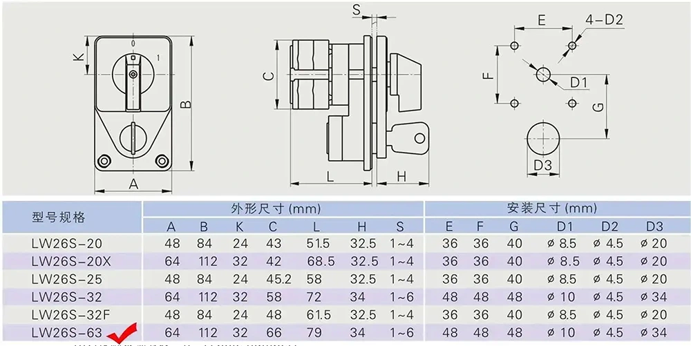 YAMING, профессиональный производитель электрических выключателей с более чем 30-летним опытом, представляет в Китае кулачковый переключатель с ключом LW26 63A (внутренняя модель: YMW26-63YS4). Он применим к цепям переменного тока частотой 50 Гц с номинальным напряжением ≤690 В и цепям постоянного тока с напряжением ≤240 В, поддерживающим номинальный ток 63 А. Благодаря компактному дизайну, комплексным функциям и превосходным показателям безопасности он широко используется при преобразовании главных цепей, прямом управлении двигателем, командном управлении и сценариях измерения, а также может адаптироваться к различным суровым рабочим условиям.
