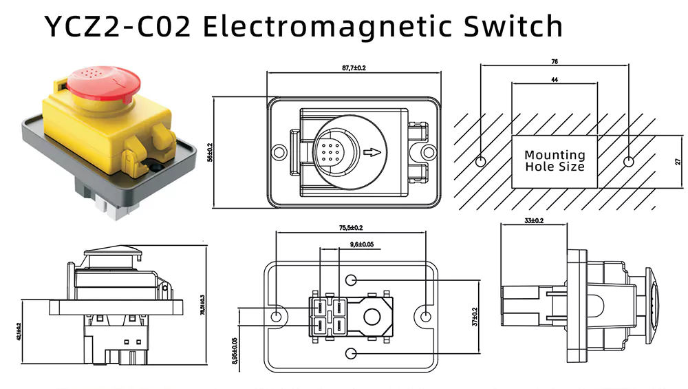 Модель YCZ2-C02 (электромагнитный переключатель с кнопкой аварийной остановки на большой панели, 8 А), разработанная для адаптации к сложным средам промышленного управления, имеет интегрированную конструкцию защиты от сбоя питания и пониженного напряжения, которая может эффективно устранить риск внезапного отказа оборудования.