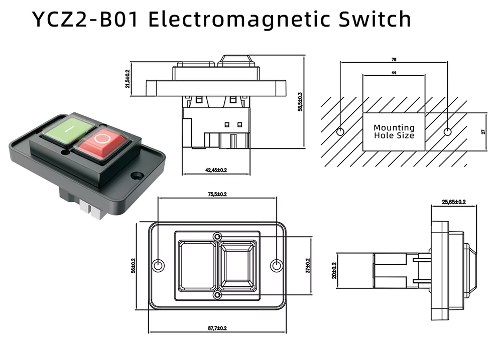 Обладая более чем 30-летним опытом работы в отрасли, компания Zhejiang Yaming Electric, надежный китайский производитель и поставщик, завоевала прочную репутацию ведущего поставщика электрических переключателей премиум-класса. Мы предоставляем профессиональные решения и неизменную надежность клиентам по всему миру. Наш электромагнитный переключатель с большой панелью на 8 А (внутренняя модель: YCZ2-B01), основанный на передовых технологиях и строгом управлении качеством, идеально подходит для ручного, периодического переключения, прерывания и преобразования резистивных и резистивно-индуктивных смешанных нагрузок, обеспечивая при этом стабильное и безопасное управление двигателями переменного тока малой мощности.