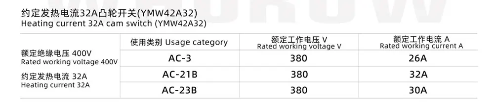 - Кулачковый переключатель 32А: имеет те же углы позиционирования 30°, 45°, 60°, 90°, что и модель 20А, с максимальным количеством 12 рабочих положений и 1–12 уровнями переключения. Он имеет более высокую токовую нагрузку и подходит для случаев с более высокими требованиями к мощности.